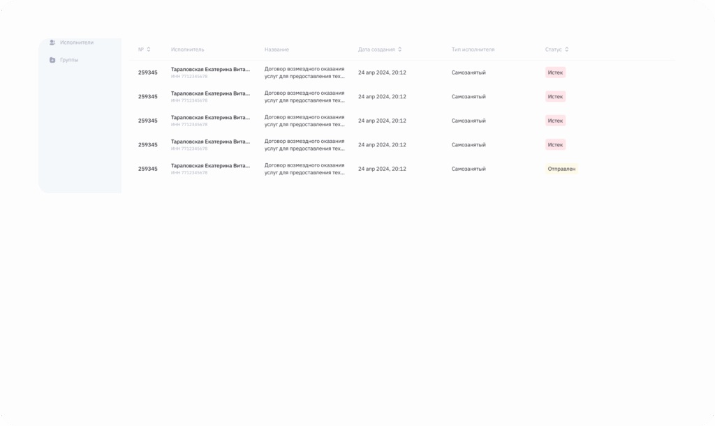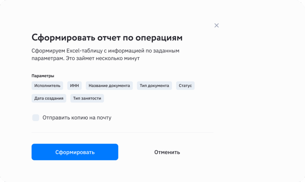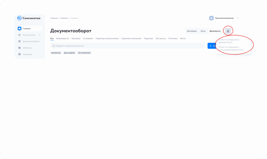 - Отчет с оригиналами документов — вы скачаете Excel-таблицу с информацией по заданным параметрам + оригиналы договоров с выбранными исполнителями.