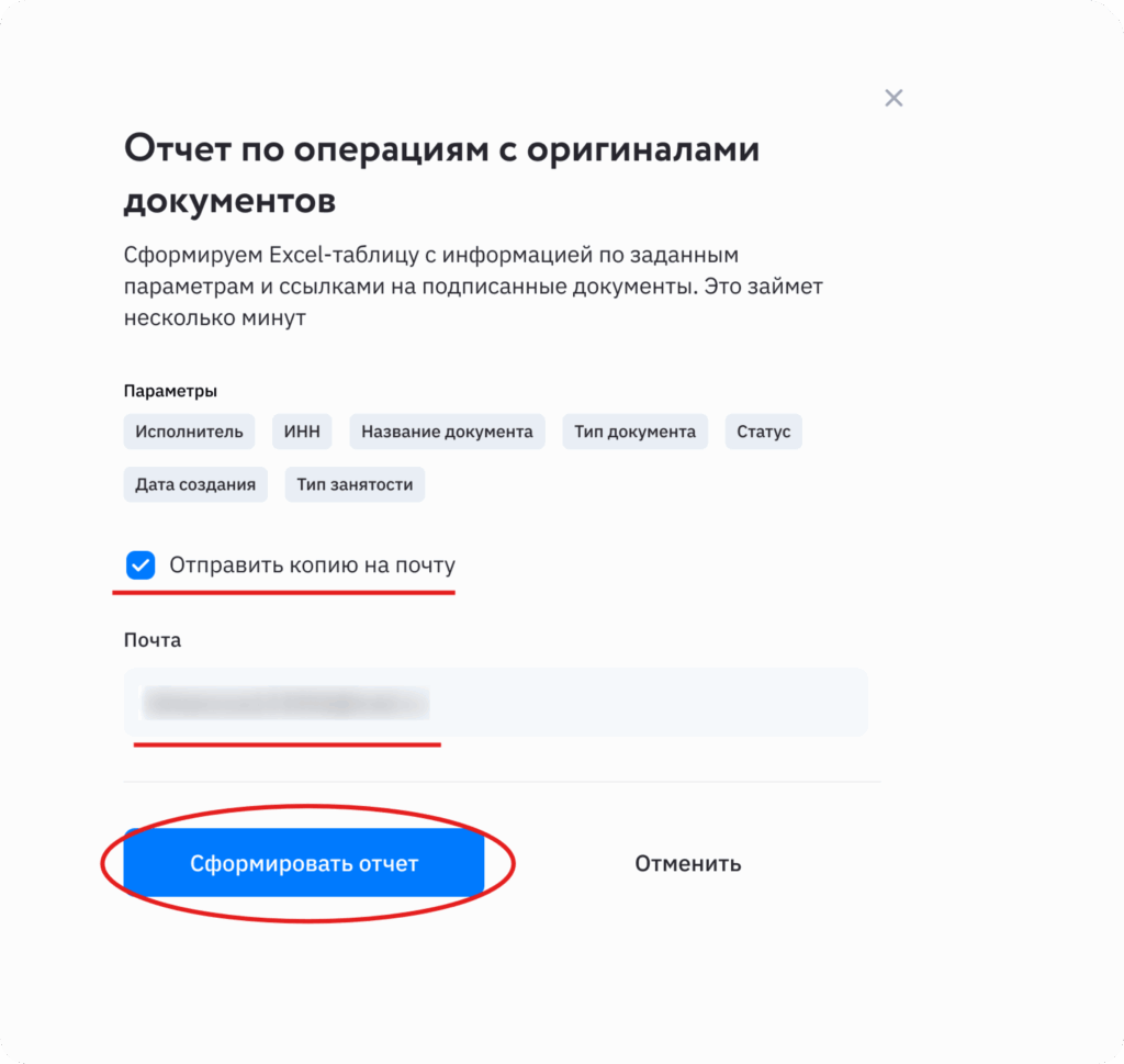 4. Если хотите получить копию отчета на почту, поставьте галочку и нажмите «Сформировать отчет».
