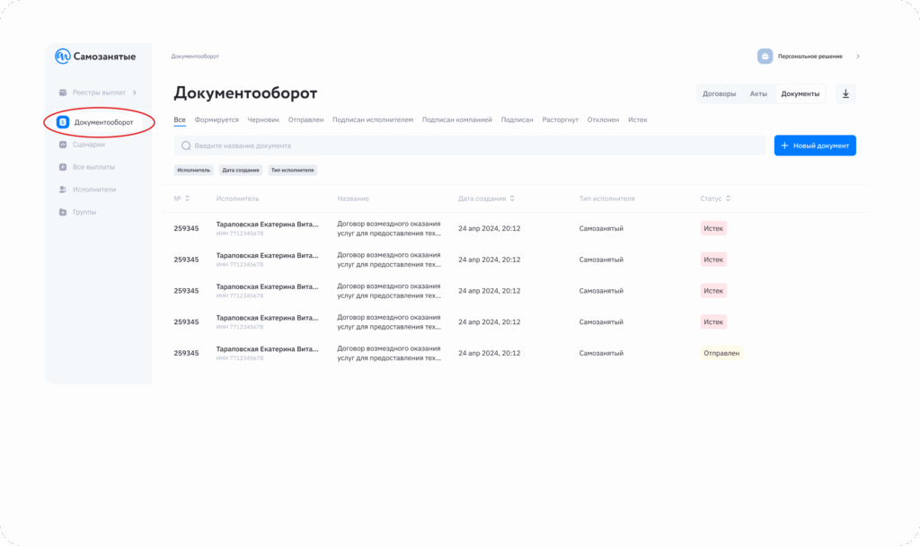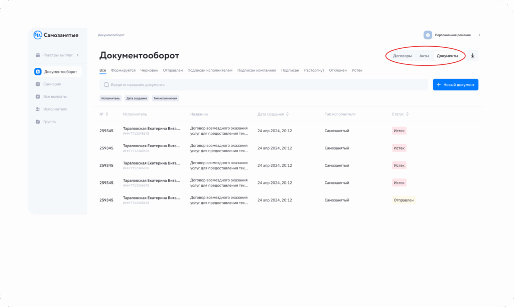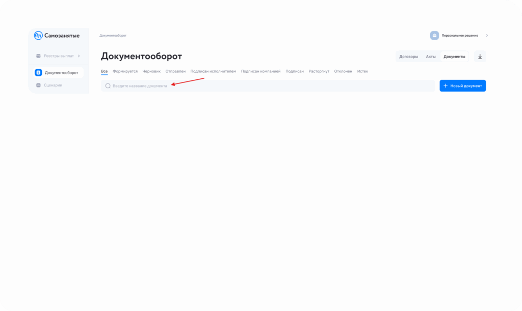 - «Документы» — список всех документов, за исключением актов и договоров.