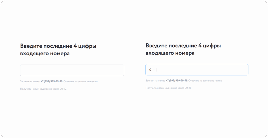 2. Введите номер телефона, чтобы зарегистрироваться. Мы позвоним на указанный номер — введите 4 последние цифры входящего номера в соответствующее поле. Отвечать на звонок не нужно.