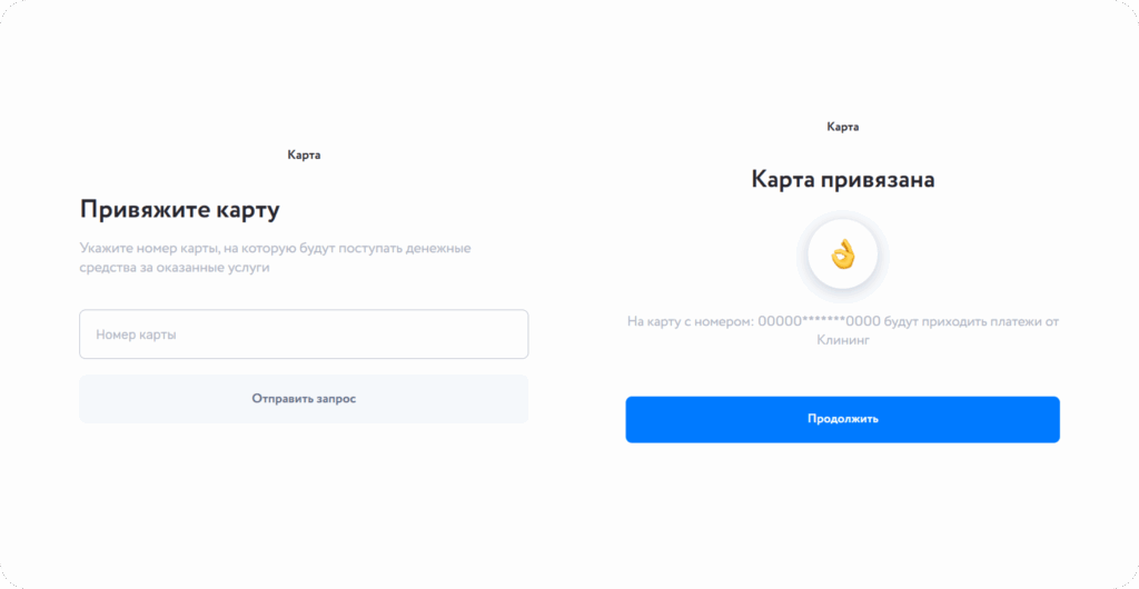 - Одна банковская карта может быть привязана только к одному самозанятому.