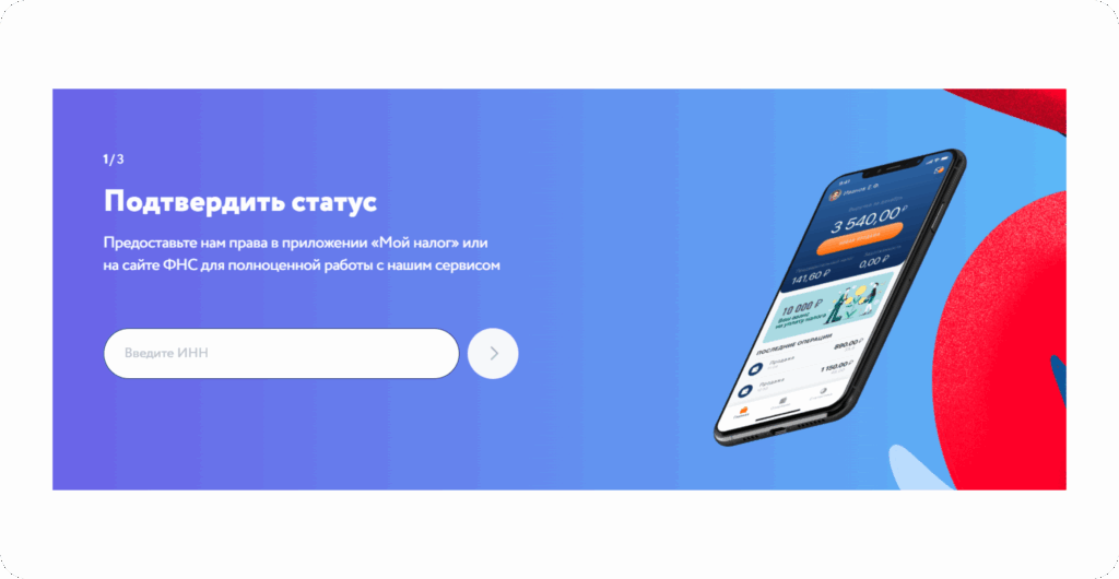 4. Укажите свой ИНН. После этого мы отправим вам запрос на предоставление прав платформе в «Мой налог».