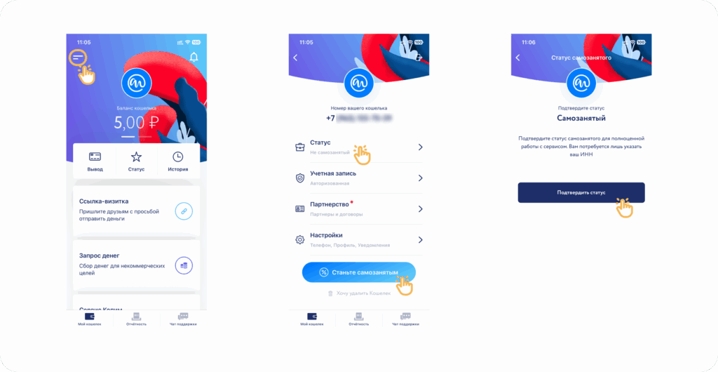 Как подтвердить статус самозанятого в мобильном приложении «Кошелька»