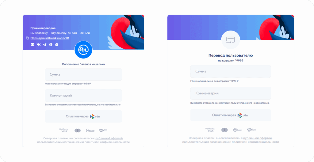 Это универсальная ссылка, которая позволяет принимать деньги на счет электронного кошелька физическим лицам без статуса самозанятого. Чтобы получить доступ к сервису, вам нужно авторизовать учетную запись.