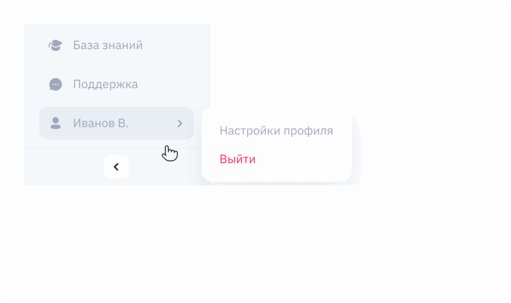 1. В боковом меню личного кабинета нужно нажать на свое имя. Вам откроется контекстное меню.
