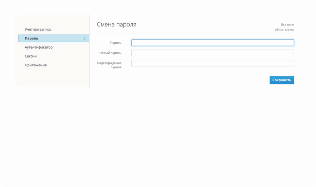 В разделе «Профиль» личного кабинета есть все инструменты для управления вашей учетной записью: обновление персональных данных, смена пароля, подключение двухфакторной аутентификации и контроль сессий.