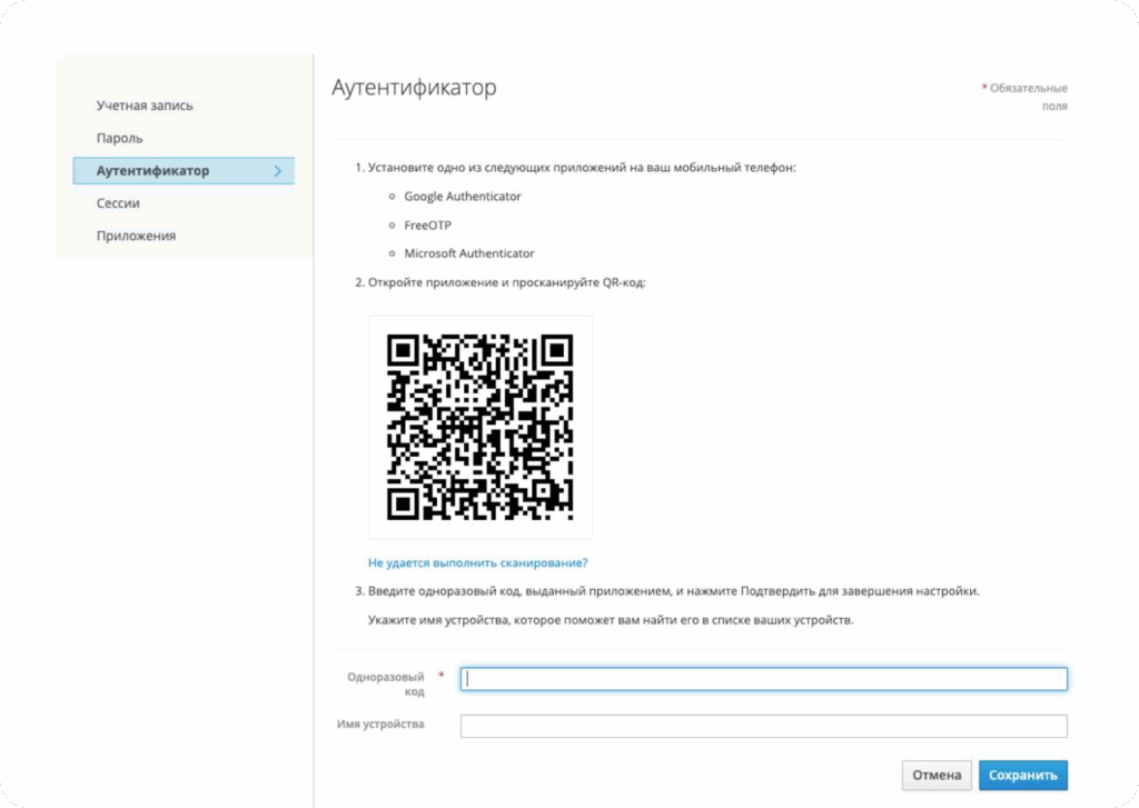 2. Установите на смартфон приложение для одноразовых кодов: Google Authenticator, FreeOTP или Microsoft Authenticator.