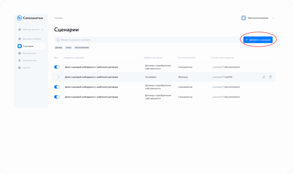 С помощью сценариев вы можете настроить условия работы отдельно для каждого исполнителя или группы исполнителей. Теперь не нужно подключать каждого вручную, мы поможем автоматизировать этот процесс.