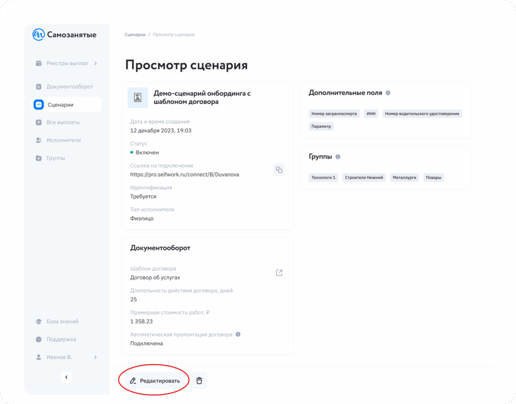 Вы также можете настроить автоматическое добавление исполнителя в группы и добавить дополнительные вопросы для сценария.