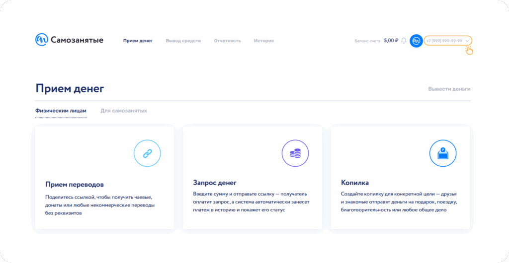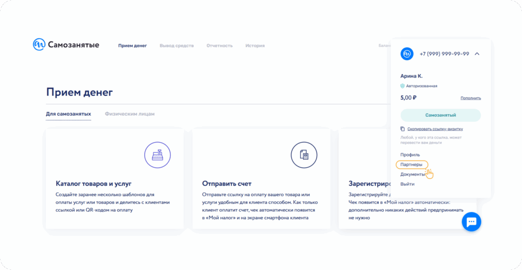 1. Войдите в аккаунт Кошелька. Для этого нужно нажать на иконку в правом верхнем углу и открыть «Профиль».