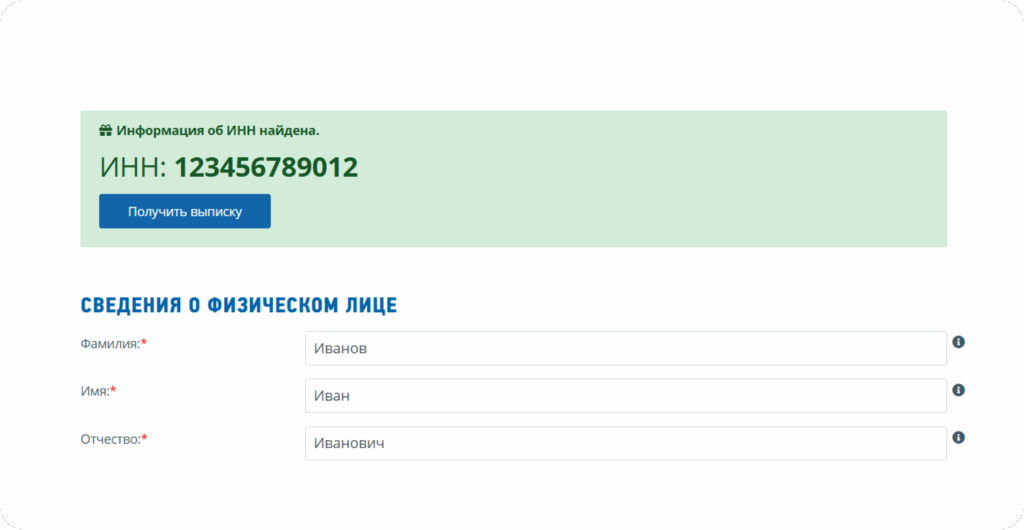 Узнать присвоенный физическому лицу ИНН можно на сайте ФНС России с помощью сервиса «Сведения об ИНН физического лица»: