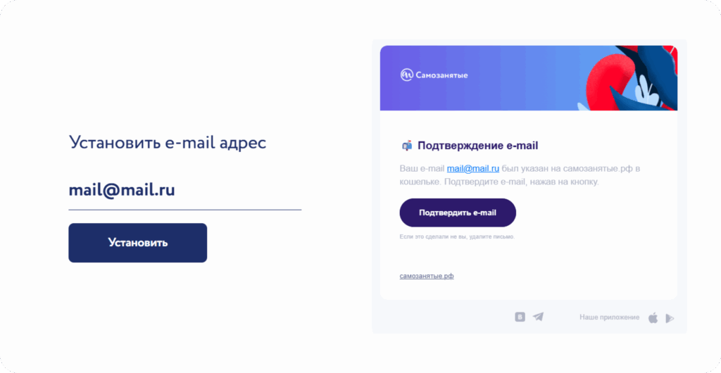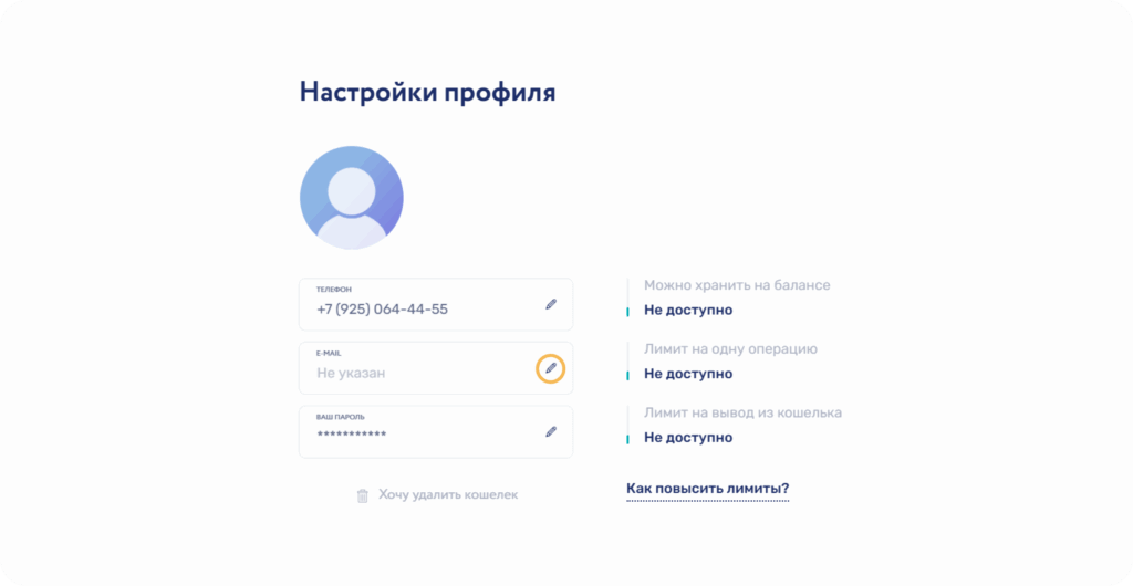 Если вы укажете электронную почту в «Кошельке», то часть уведомлений будет поступать на ваш e-mail: например, уведомление о пополнении баланса или письмо с информацией о том, что нужно подписать документ. Указывать почту — необязательно, этот этап можно пропустить.